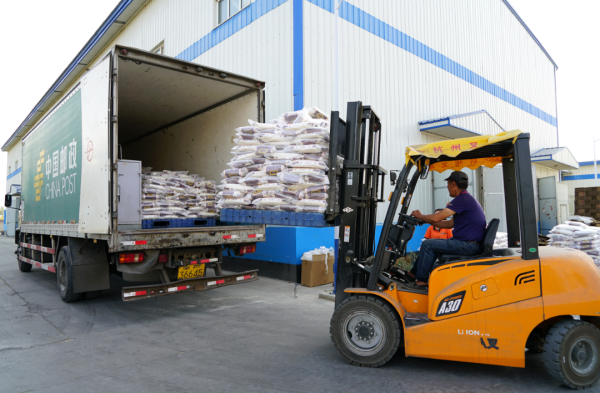 “現(xiàn)在我們只需要把訂單信息推送給郵政,剩下的就全不用操心了?!敝煨↓埧粗b車待發(fā)的大米說,“郵政為公司提供寄遞物流、涉農(nóng)貸款、渠道銷售等服務(wù),對我們幫助很大!”