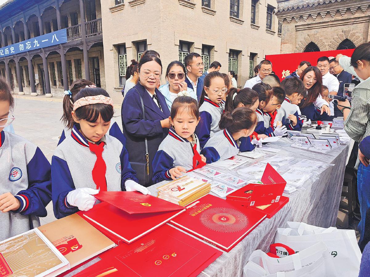 在紀(jì)念館現(xiàn)場(chǎng),太原市杏花嶺區(qū)分公司臨時(shí)創(chuàng)新設(shè)立的“九一八”紅色主題郵局,以郵政文化為載體,打造可感知、可參與、可珍藏的愛國主義教育新體驗(yàn)。該分公司特別推出4枚專題紀(jì)念章,借助國民師范風(fēng)景日戳首發(fā),通過蓋戳打卡體驗(yàn)、紅色郵票展覽、互動(dòng)交流分享等形式,弘揚(yáng)偉大抗戰(zhàn)精神,強(qiáng)化愛國主義教育。