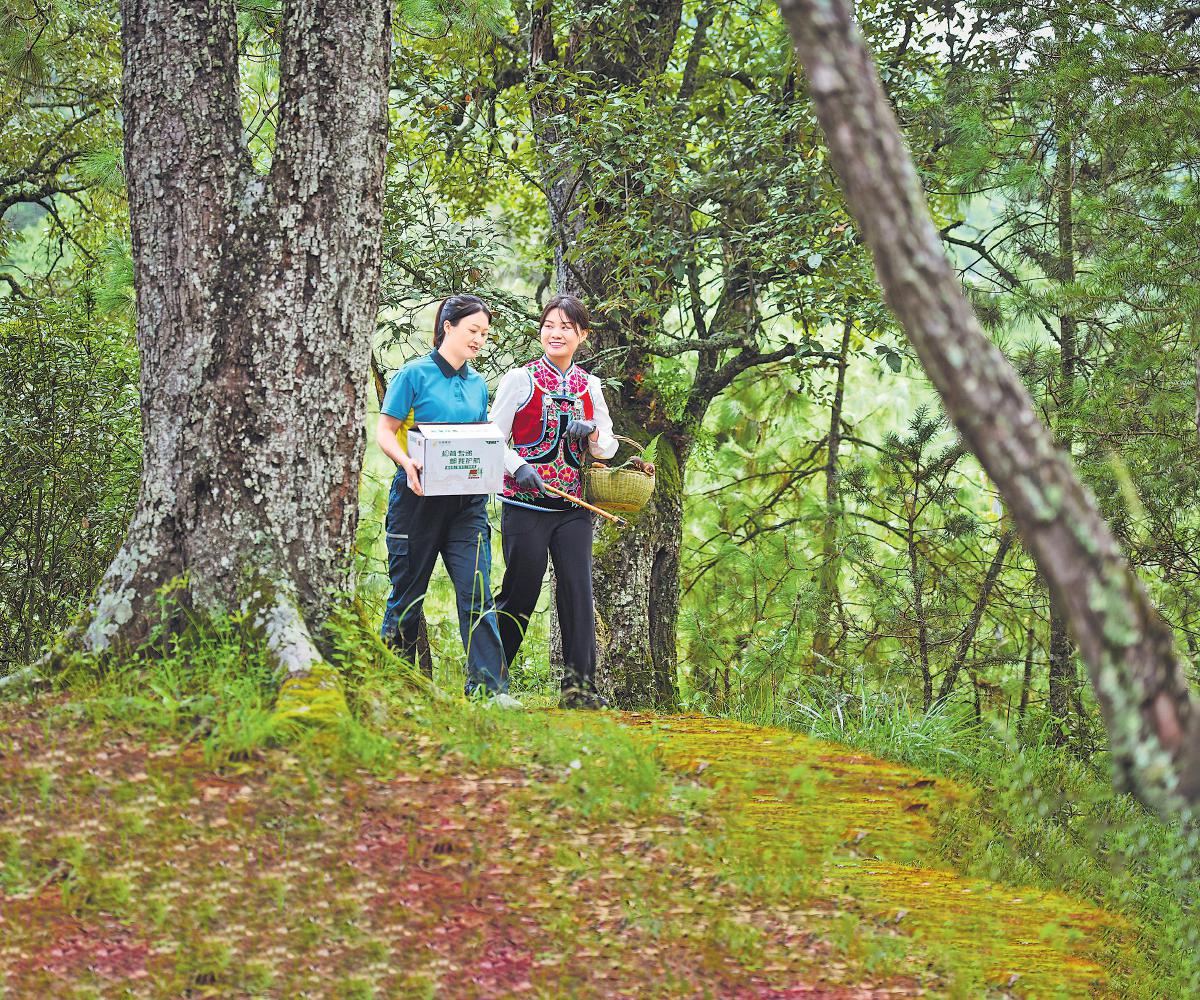 9月17日清晨,楚雄州南華縣郵政分公司員工隨菌農(nóng)上山采摘松茸,實(shí)現(xiàn)林下至郵路無(wú)縫銜接。