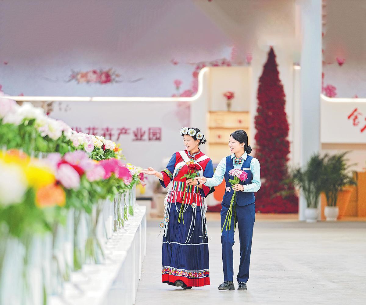 郵政小哥把一箱箱鮮花郵件搬上郵車(chē),讓花香隨郵車(chē)駛向機(jī)場(chǎng),奔向全國(guó)消費(fèi)者。