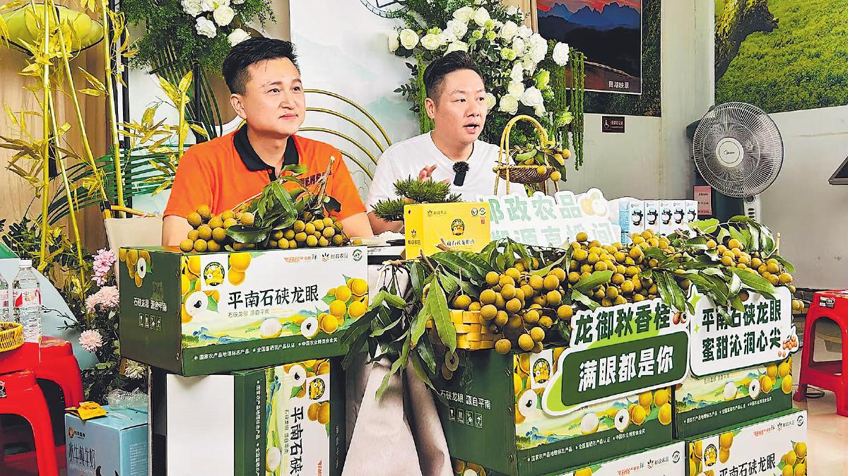 “石硤龍眼是貴港市平南縣的特產,作為國家地理標志認證的水果,它的特點是果肉厚實、入口留香。”在石硤龍眼核心基地,郵政直播團隊走進田間地頭,用鏡頭展示龍眼采摘、分揀的全過程,吸引網友紛紛下單;一旁的郵政員工根據訂單,將龍眼打好包、貼好單、裝上車,發往全國各地。僅一場直播,貴港郵政就賣出1萬公斤龍眼,直播GMV達100余萬元。