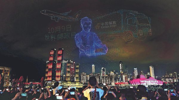 10月4日20時30分,重慶市南濱路上空,一場以第56屆世界郵政日為主題的無人機(jī)燈光秀璀璨上演。數(shù)千架無人機(jī)以天為幕,在長江上空編織出郵遞員風(fēng)雨無阻、使命必達(dá),郵政金融員工溫馨服務(wù)、連接美好以及重慶地標(biāo)明信片詮釋山河情誼的影像。現(xiàn)場,來自全國各地的游客及重慶市民駐足觀看,紛紛用手機(jī)拍下這精彩瞬間。孩子們指著天空歡呼:“看,天上有郵遞員在飛!”這場科技與溫情交融的視覺盛宴,展現(xiàn)了中國郵政的現(xiàn)代化形象,讓群眾在節(jié)日的歡樂中感受到郵政服務(wù)的溫度與堅守。