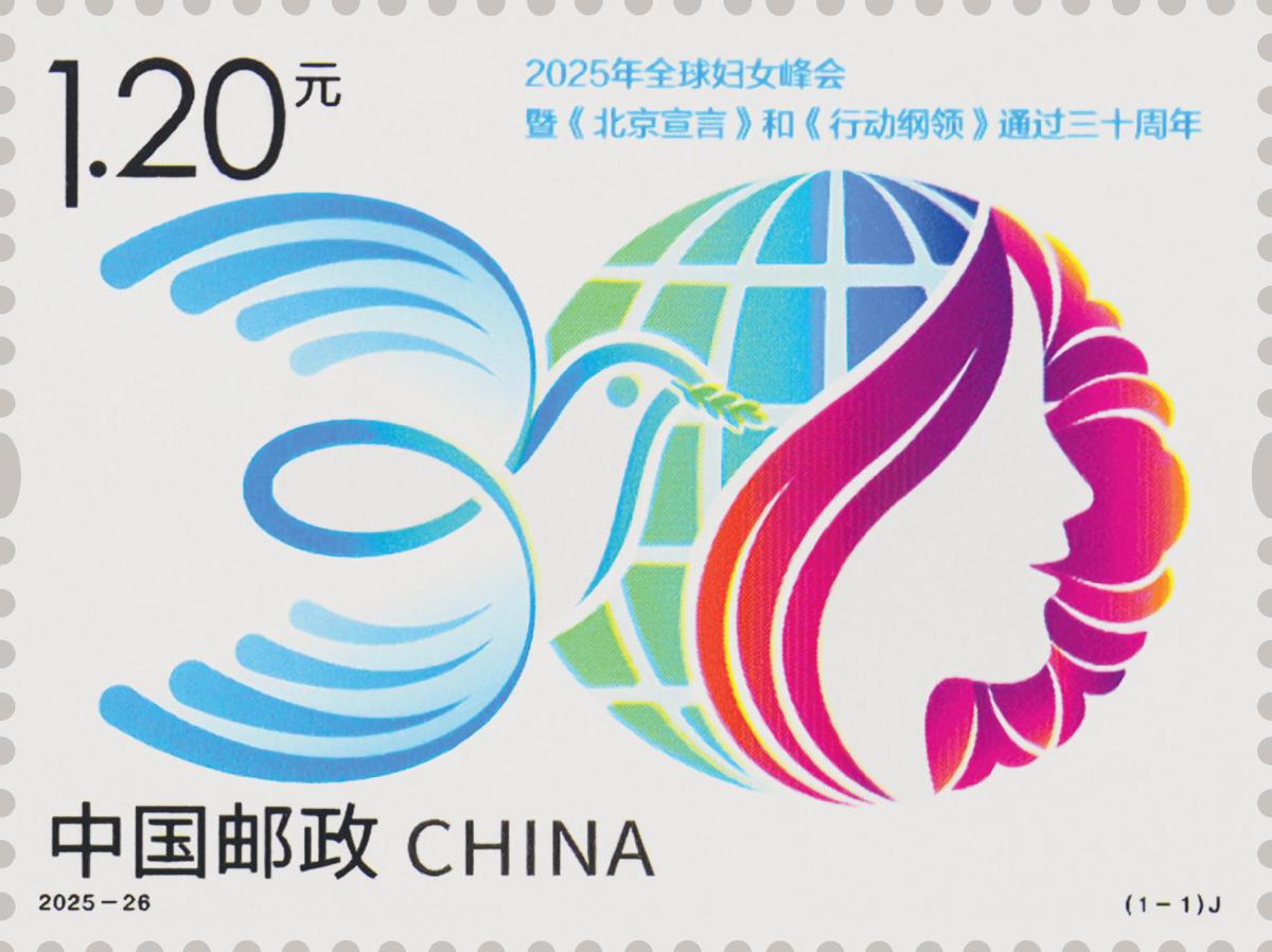 10月13日,中國(guó)郵政發(fā)行《2025年全球婦女峰會(huì)暨〈北京宣言〉和〈行動(dòng)綱領(lǐng)〉通過(guò)三十周年》紀(jì)念郵票1套1枚。郵票圖案名稱(chēng)為:2025年全球婦女峰會(huì)暨《北京宣言》和《行動(dòng)綱領(lǐng)》通過(guò)三十周年。