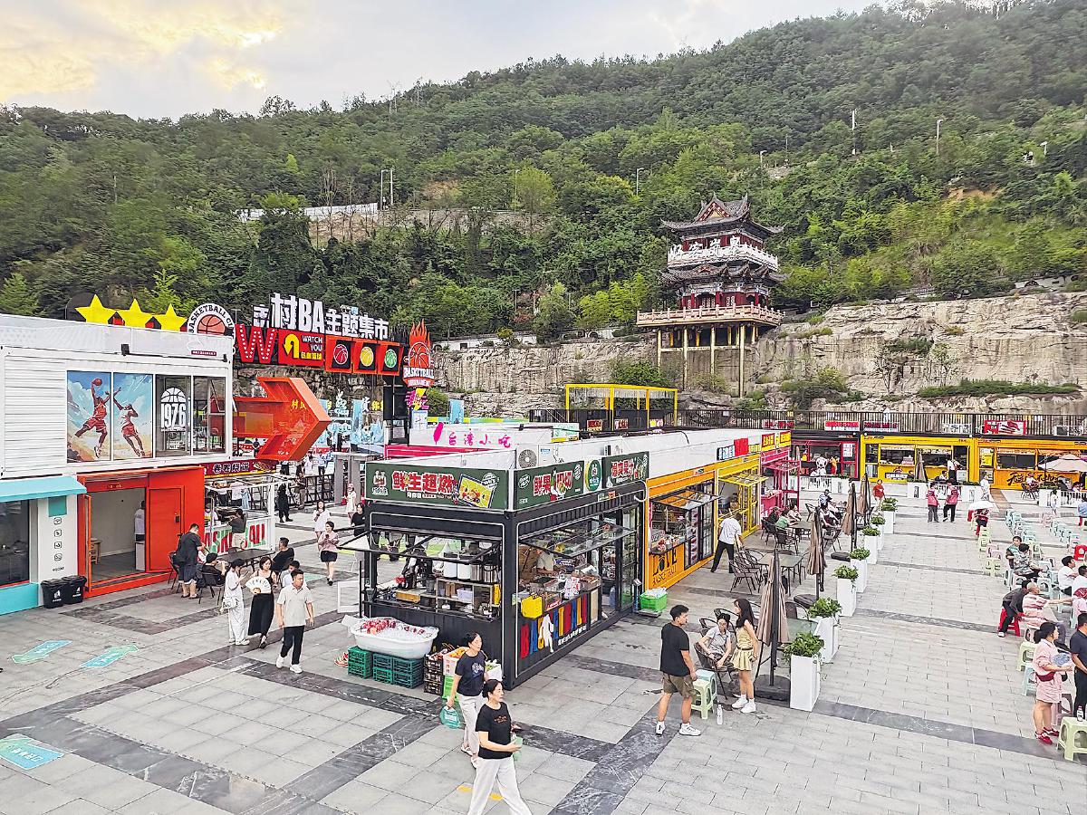 賽場(chǎng)外的“村BA”主題集市熱鬧非凡。