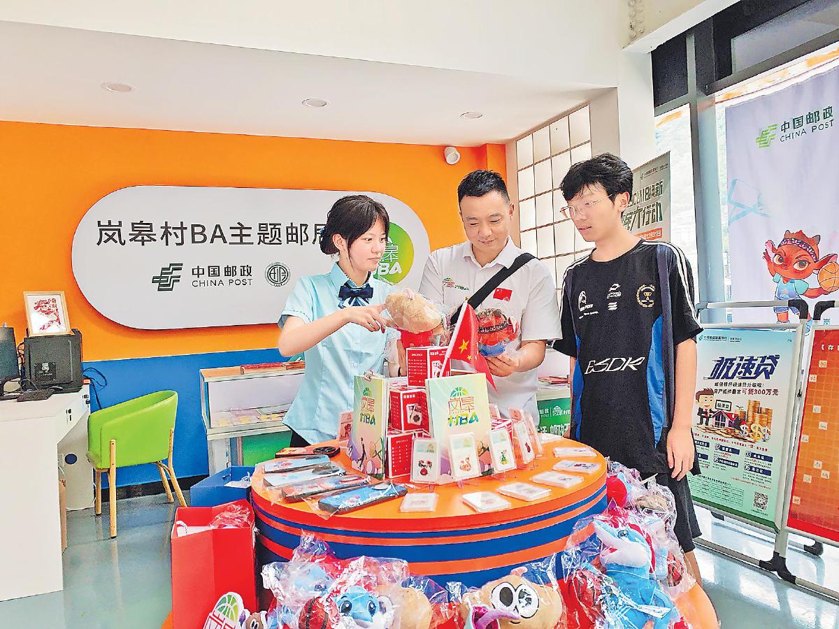 走進(jìn)位于“嵐皋村BA”賽場(chǎng)一側(cè)的主題郵局,滿滿的“村BA”文化氣息撲面而來(lái)。這里精心陳列著專門為“村BA”賽事定制開(kāi)發(fā)的明信片、首日封、個(gè)性化郵折等郵政特色產(chǎn)品,以及吉祥物毛絨玩具、冰箱貼、托特包等新潮的文創(chuàng)周邊。每一件商品都承載著“村BA”的精彩瞬間和鄉(xiāng)村體育的獨(dú)特魅力,成為傳播“村BA”文化的重要載體。