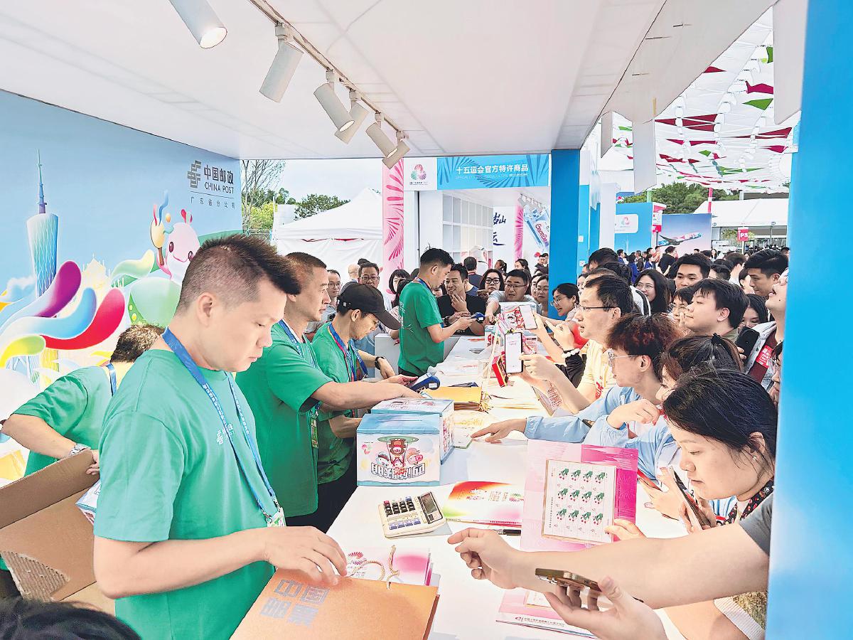目前,全運郵局也在廣東各個比賽城市全面亮相。廣州市分公司布局地鐵“全運快閃郵局”4個、永慶坊“乒乓快閃郵局”1個、中華廣場“全運快閃郵局”1個、小石集“快閃郵局”1個,覆蓋了廣州市內(nèi)重點商圈、地鐵樞紐等重要客流區(qū)域。深圳市郵政分公司在十五運會群眾比賽羽毛球項目的比賽現(xiàn)場設立了全運郵局。在郵局內(nèi),“有聲明信片”成為人氣焦點。人們現(xiàn)場打印賽事照片明信片,并錄入語音祝福加蓋專屬紀念戳。一位來自外地的觀賽者感慨道:“為觀看這場賽事特意跨越千里趕來,這份全運記憶既溫暖又有意義?!敝猩绞朽]政分公司陸續(xù)在全市7個官方特許商品零售店設立全運郵局,推出十五運會吉祥物和特色產(chǎn)品、紀念戳卡及蓋章服務。十五運會群眾賽事期間,中山郵政還進駐比賽場館和酒店,為運動員與群眾提供便捷服務。惠州市郵政分公司在比賽場館設立全運郵局及“運動健將郵筒”,開展“為健兒寄祝?!泵餍牌]寄活動、“激情全運 戳記精彩”集戳活動,將祝福傳遞給更多運動員。東莞市郵政分公司在多個商圈開設全運郵局,并在全市設置了6個可購買十五運會吉祥物的網(wǎng)點,與市民共度全運會嘉年華。東莞郵政同步開展“戳記精彩”集戳活動,提供賽事主題紀念戳、運動項目紀念戳等。