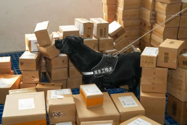 12月10日,海關工作犬在長沙國際郵件互換局查驗進口包裹。