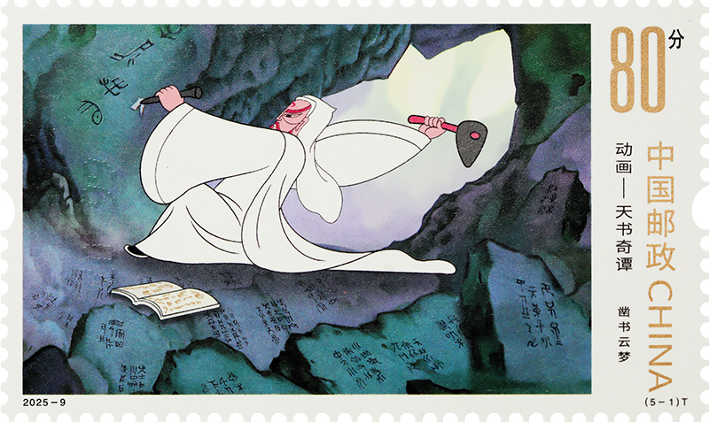 中國郵政定于2025年6月1日發(fā)行《動畫——天書奇譚》特種郵票1套5枚,郵票圖案名稱為:鑿書云夢、蛋生拜師、巧用寶盆、大戰(zhàn)狐妖、天書永傳。全套郵票面值5.20元,計劃發(fā)行數(shù)量500萬套。